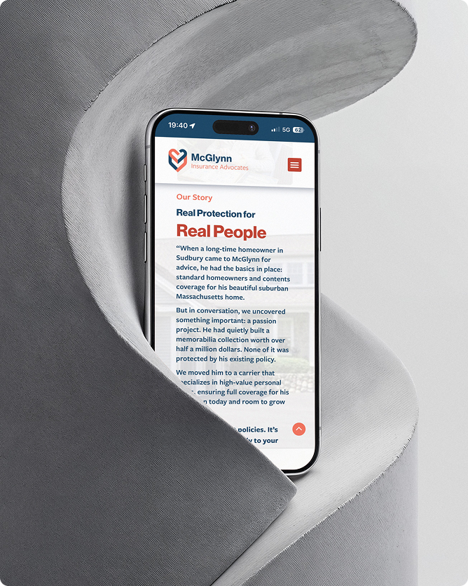 With over a century of service, McGlynn Insurance Advocates has built a reputation rooted in care, reliability, and deep industry knowledge. When they approached me, their goal was clear, to bring this legacy into the 21st century with a modern, refined brand identity that honored their history while positioning them as a forward-thinking leader in insurance services.
