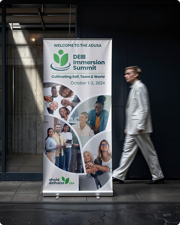 For Ahold Delhaize’s DEIB Immersion summit, the goal was to create visuals that were cohesive, polished, and worthy of a global leader in retail, communicating professionalism, energy, and prestige across every touchpoint.