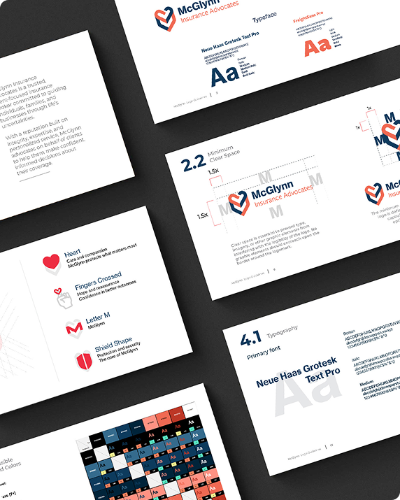 The full ecosystem now reflects McGlynn’s century-long commitment to clients: Cohesive branding across print, digital, and marketing materials. Guidelines and templates to ensure consistent execution across future campaigns and client communications. A visual identity that positions McGlynn Insurance Advocates as a trusted, contemporary leader in insurance, bridging legacy and modern excellence.