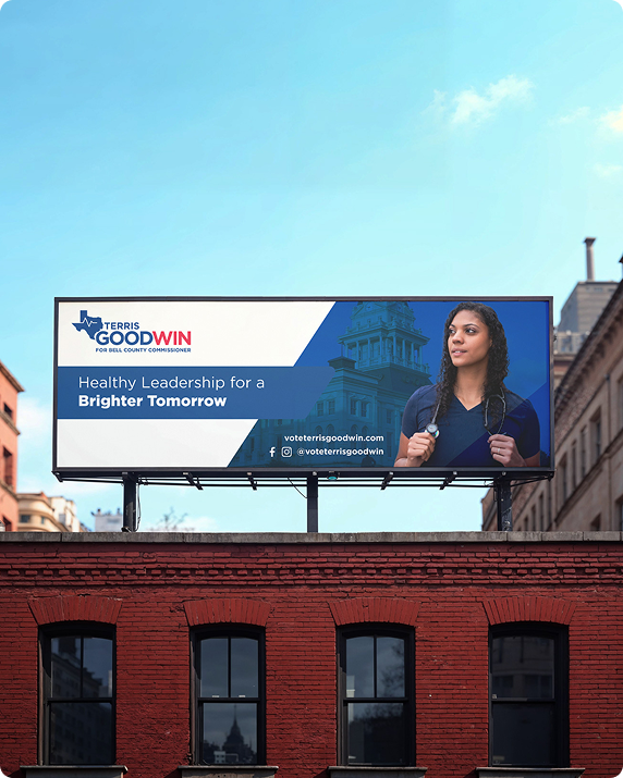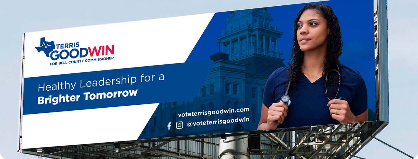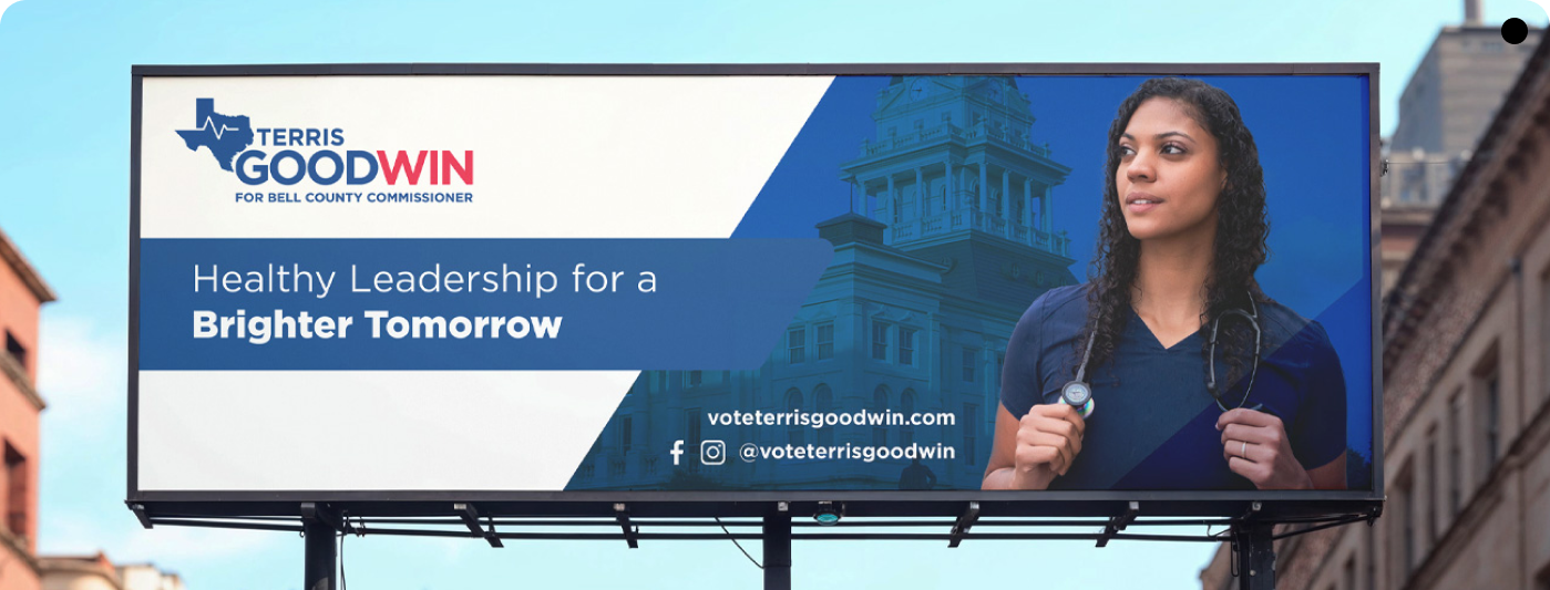 The final billboard campaign captured Terris Goodwin’s leadership and energy, delivering a professional, high-visibility presence that effectively connected with the community and reinforced her candidacy.