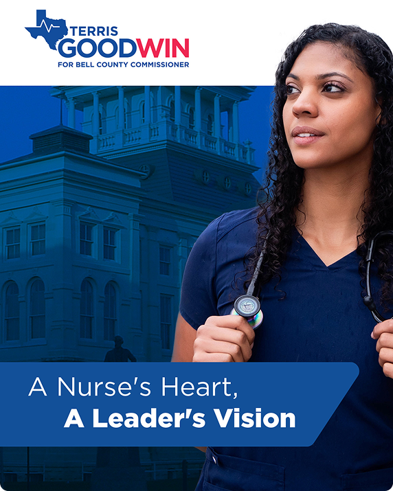 Terris Goodwin’s run for Bell County Commissioner called for visuals that were confident, memorable, and attention-grabbing. The goal was to craft a visual identity that reflected her leadership, approachability, and commitment to the community.