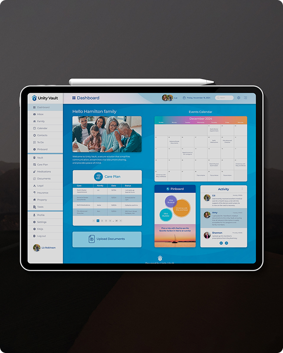 The result is a cohesive, premium identity that gives UnityVault a powerful presence in the caregiving space. The brand feels deeply human, rooted in empathy, anchored in trust, while the app delivers a polished, intuitive experience. This branding and design foundation has supported UnityVault’s growth into a profitable, impactful company that truly helps care partners connect and manage their shared responsibilities with confidence.